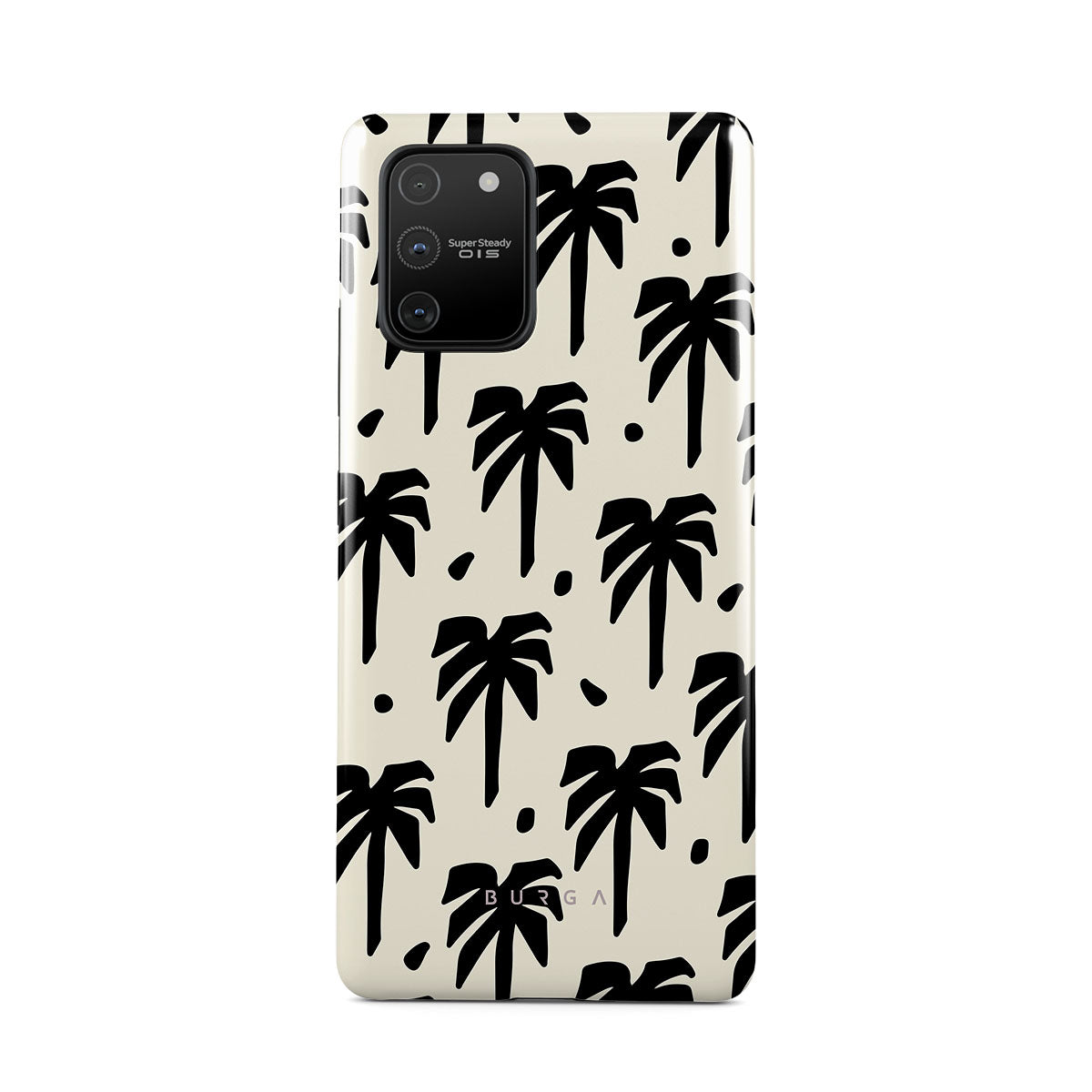 A peaceful haven right at your fingertips. The design contrasts black palm silhouettes against a calming light backdrop. Our Paraíso Samsung Galaxy S10 Lite phone case is your passport to an everlasting tropical escape.