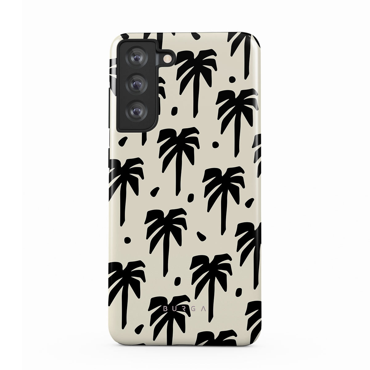 A peaceful haven right at your fingertips. The design contrasts black palm silhouettes against a calming light backdrop. Our Paraíso Samsung Galaxy S21 FE phone case is your passport to an everlasting tropical escape.