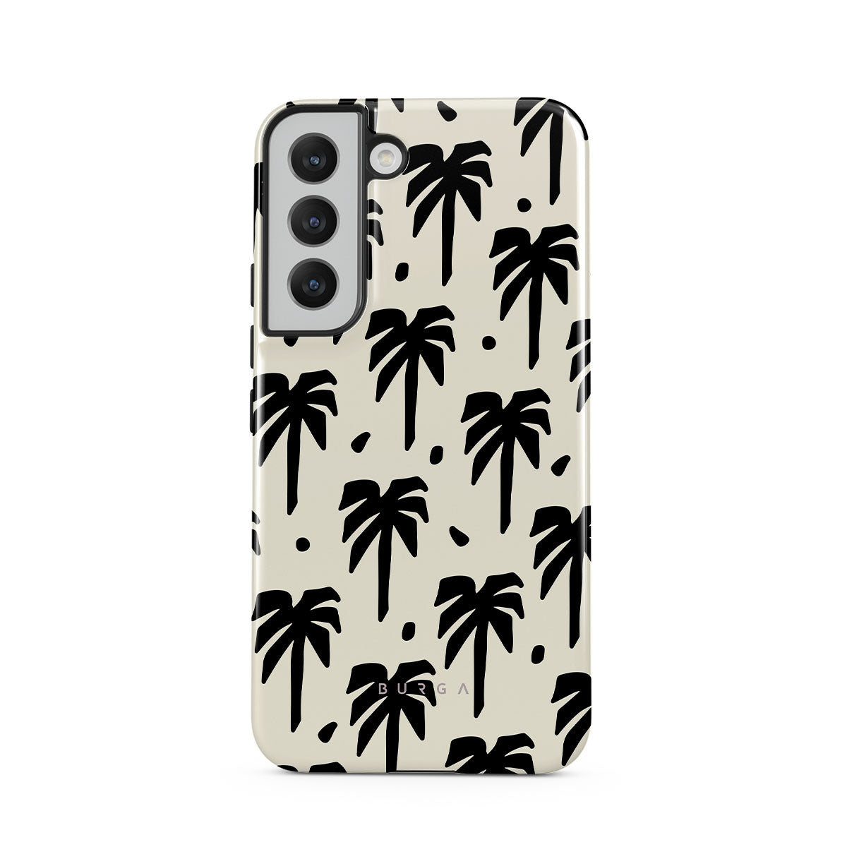 A peaceful haven right at your fingertips. The design contrasts black palm silhouettes against a calming light backdrop. Our Paraíso Samsung Galaxy S22 Plus phone case is your passport to an everlasting tropical escape.