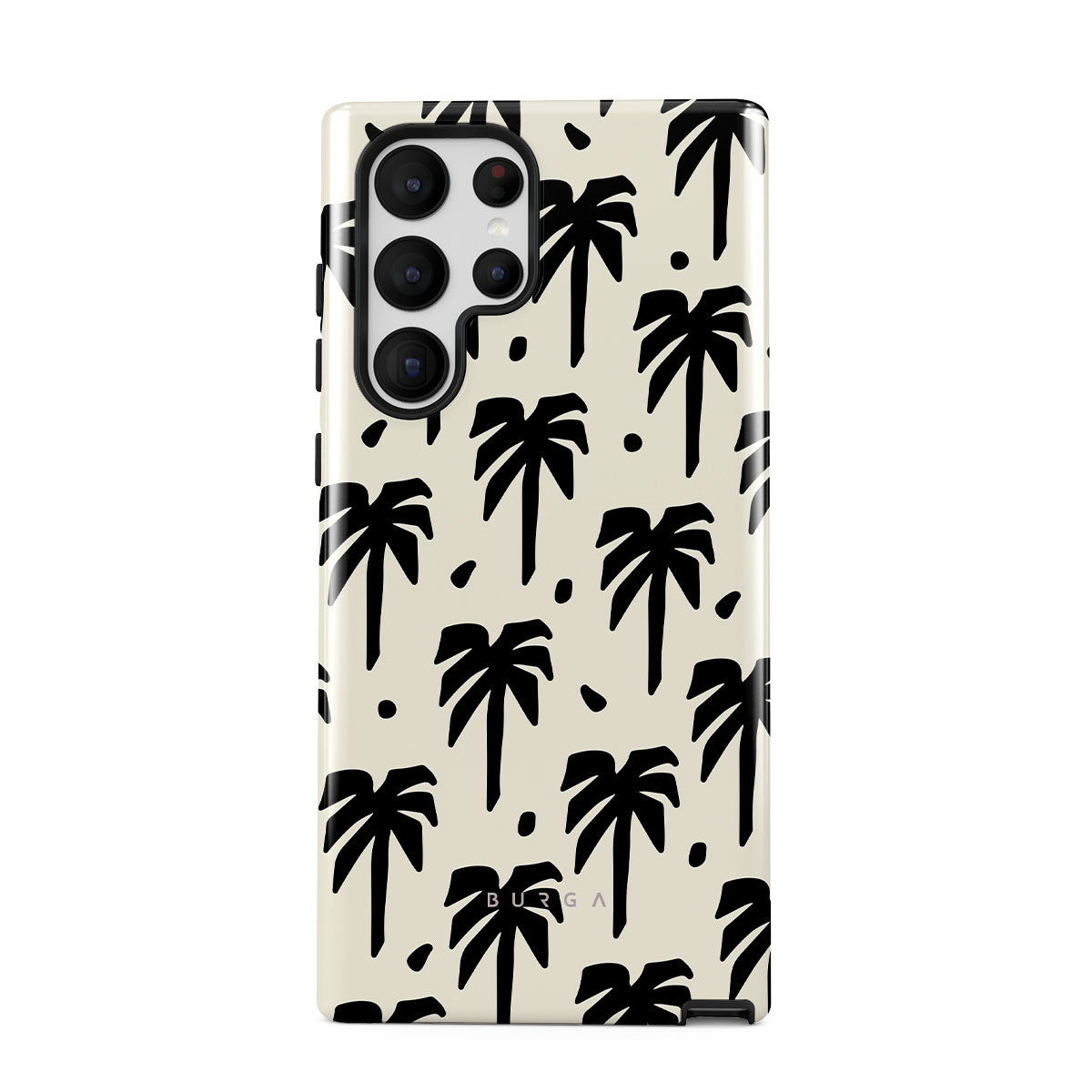 A peaceful haven right at your fingertips. The design contrasts black palm silhouettes against a calming light backdrop. Our Paraíso Samsung Galaxy S22 Ultra phone case is your passport to an everlasting tropical escape.