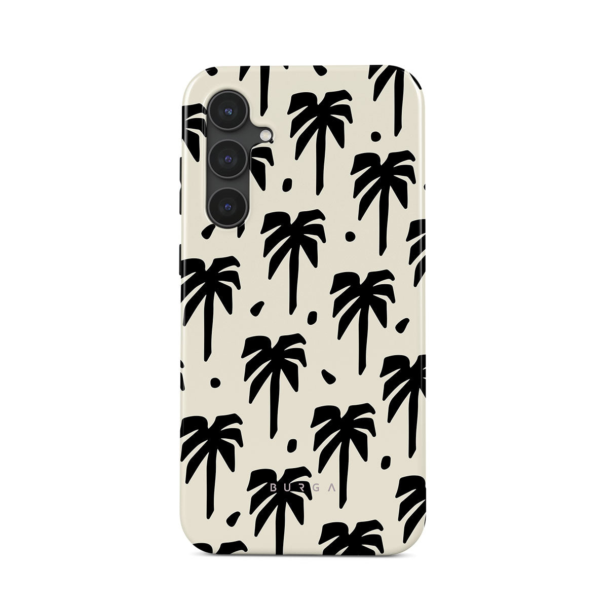 A peaceful haven right at your fingertips. The design contrasts black palm silhouettes against a calming light backdrop. Our Paraíso Samsung Galaxy S23 FE phone case is your passport to an everlasting tropical escape.