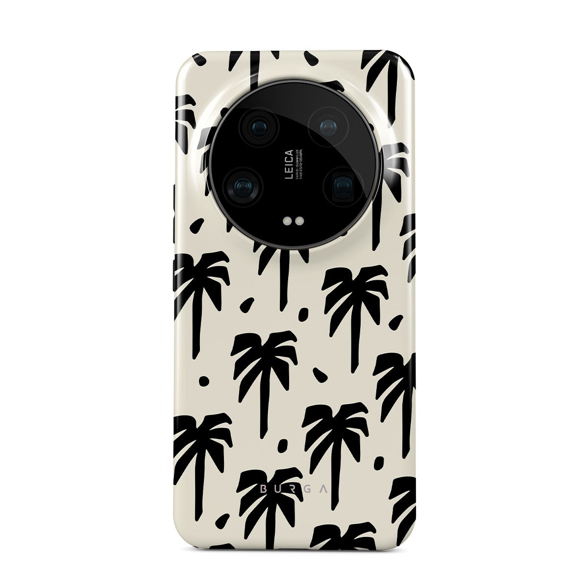 A peaceful haven right at your fingertips. The design contrasts black palm silhouettes against a calming light backdrop. Our Paraíso Xiaomi 14 Ultra phone case is your passport to an everlasting tropical escape.