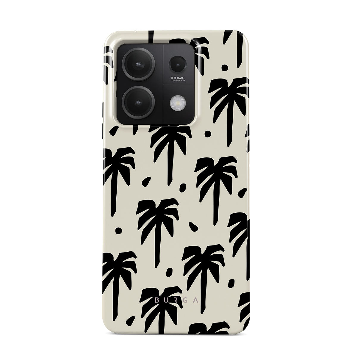 A peaceful haven right at your fingertips. The design contrasts black palm silhouettes against a calming light backdrop. Our Paraíso Xiaomi Redmi Note 13 5G phone case is your passport to an everlasting tropical escape.