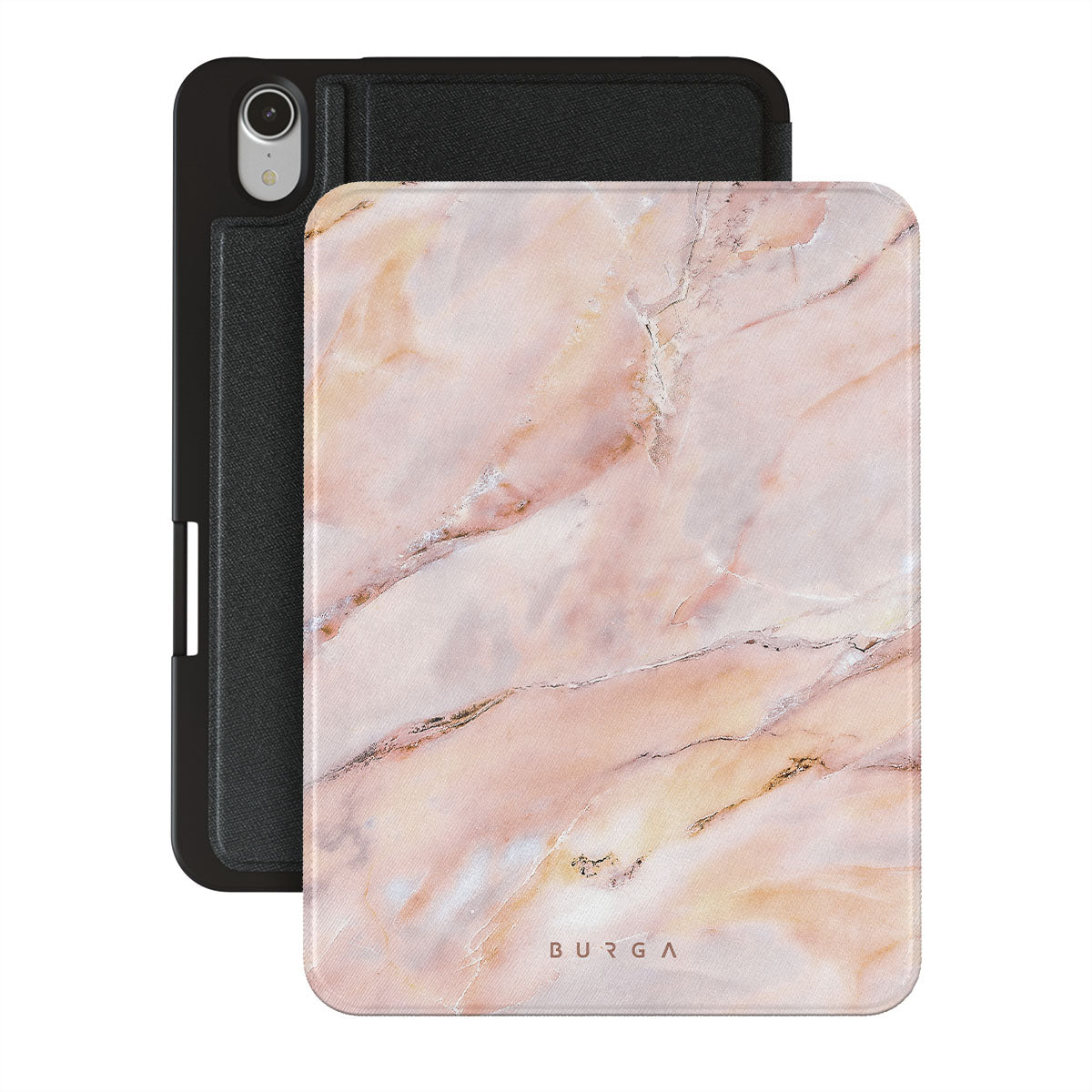 Morning Sunshine iPad Mini 8.3 (A17 Pro/6th Gen) 2021 folio case features a timeless pastel marble design, inspired by the beauty of a sunrise. Soft hues of pink and orange will add warmth to your style. Keep your iPad protected with sunshine in your pocket.
