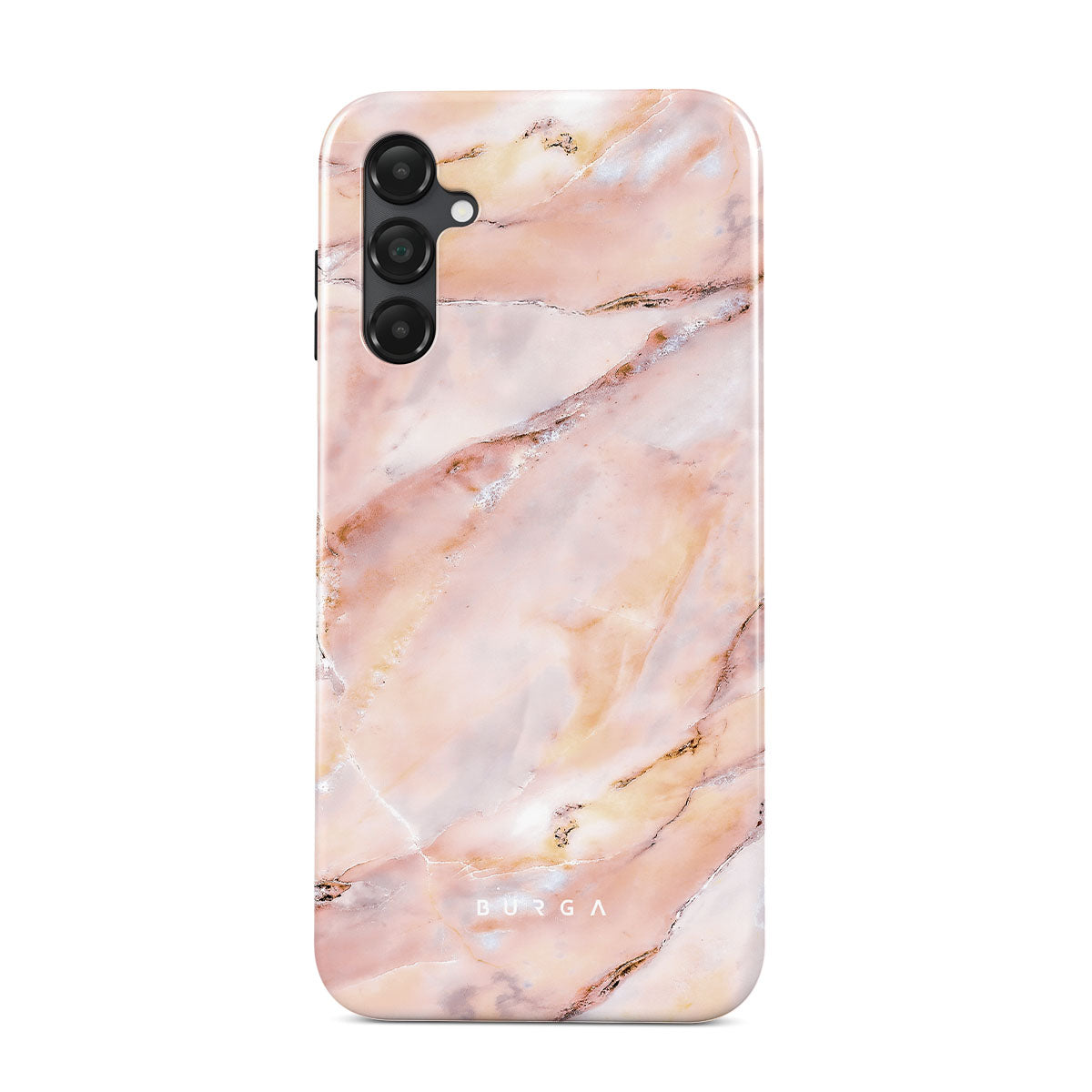 Morning Sunshine Samsung Galaxy A14 5G phone case features a timeless pastel marble design, inspired by the beauty of a sunrise. Soft hues of pink and orange will add warmth to your style. Keep your phone protected with sunshine in your pocket.