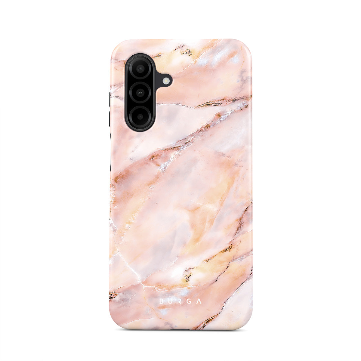 Morning Sunshine Samsung Galaxy A26 5G phone case features a timeless pastel marble design, inspired by the beauty of a sunrise. Soft hues of pink and orange will add warmth to your style. Keep your phone protected with sunshine in your pocket.
