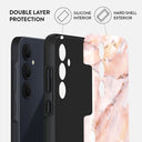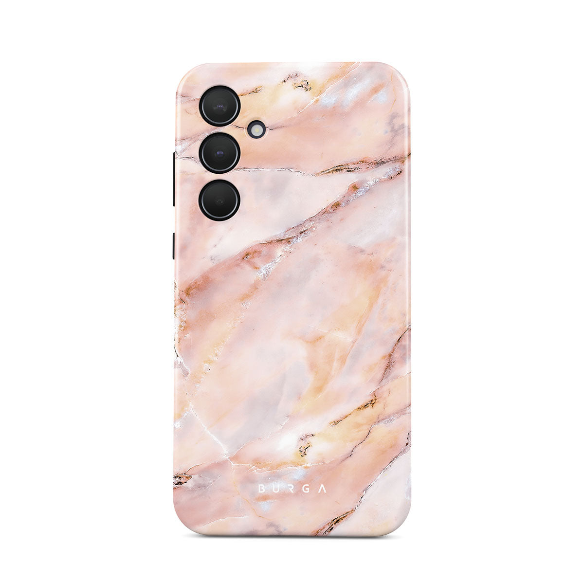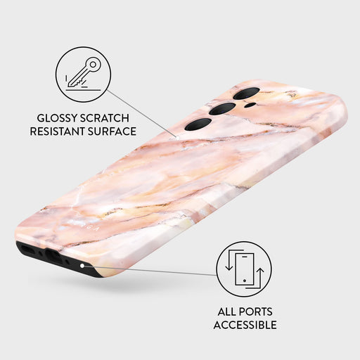 Morning Sunshine Samsung Galaxy A51 phone case features a timeless pastel marble design, inspired by the beauty of a sunrise. Soft hues of pink and orange will add warmth to your style. Keep your phone protected with sunshine in your pocket.