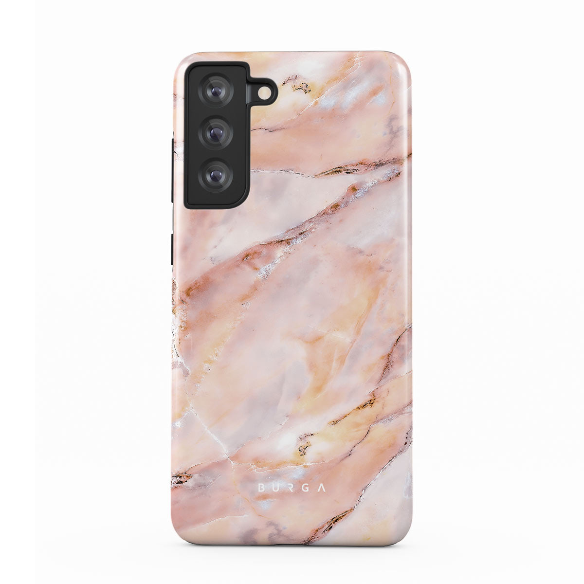 Morning Sunshine Samsung Galaxy S21 FE phone case features a timeless pastel marble design, inspired by the beauty of a sunrise. Soft hues of pink and orange will add warmth to your style. Keep your phone protected with sunshine in your pocket.