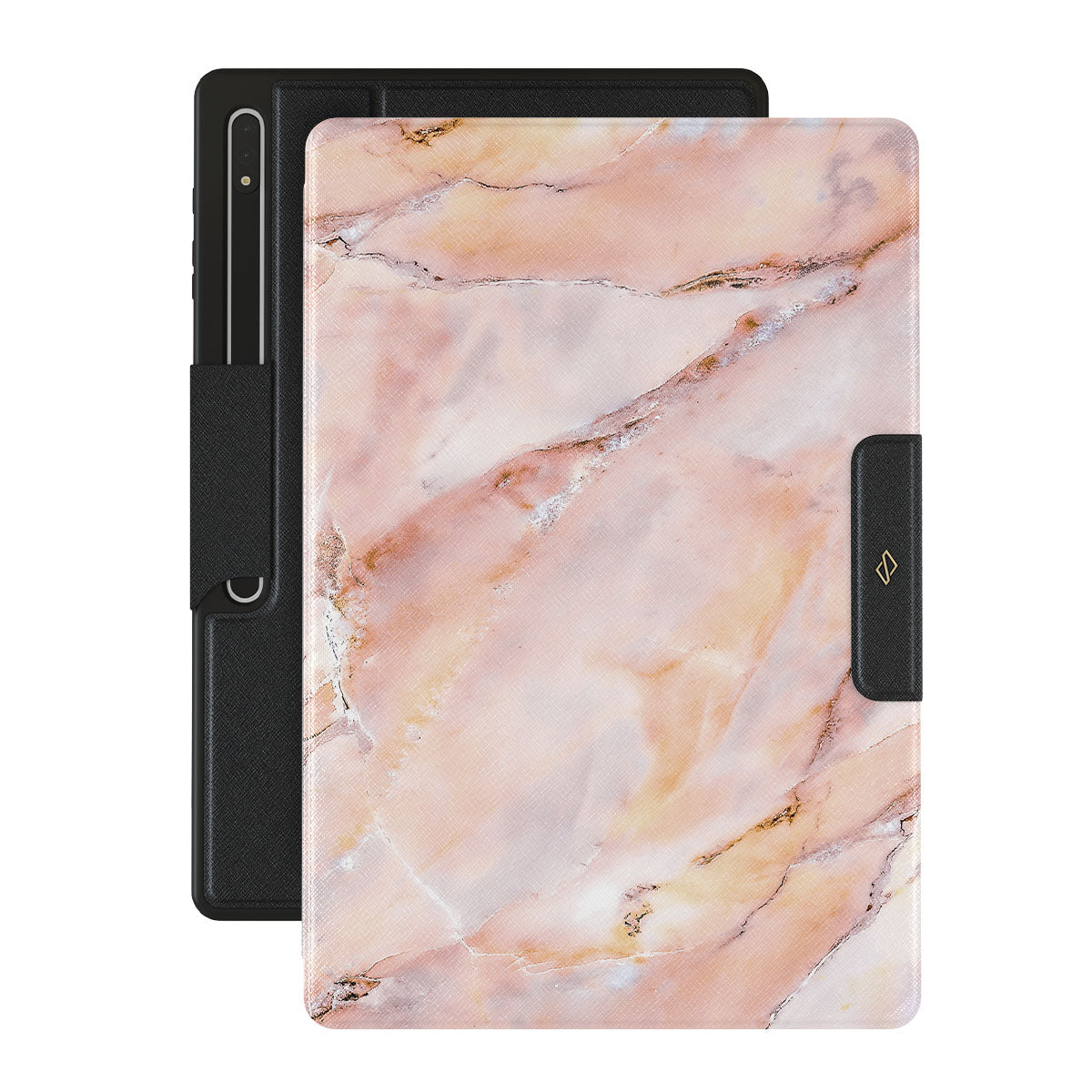 Morning Sunshine Samsung Galaxy Tab S8 Ultra folio case features a timeless pastel marble design, inspired by the beauty of a sunrise. Soft hues of pink and orange will add warmth to your style. Keep your Galaxy Tab protected with sunshine in your pocket.