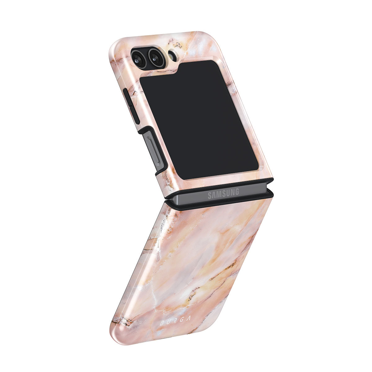 Morning Sunshine Samsung Galaxy Z Flip 5 phone case features a timeless pastel marble design, inspired by the beauty of a sunrise. Soft hues of pink and orange will add warmth to your style. Keep your phone protected with sunshine in your pocket.