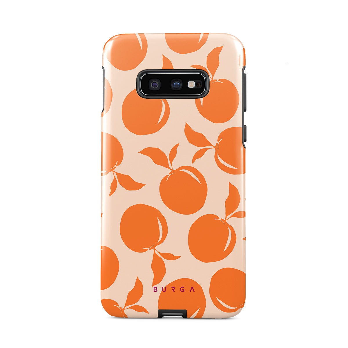 Picture a sun-soaked grove where ripe, juicy peaches glow with a radiant orange vibrance, their succulent aroma filling the warm air. Our Peach Fuzz design infuses your Samsung Galaxy S10E phone case with a lively, sun-kissed charm, perfectly capturing the essence of carefree, joyful summer days.