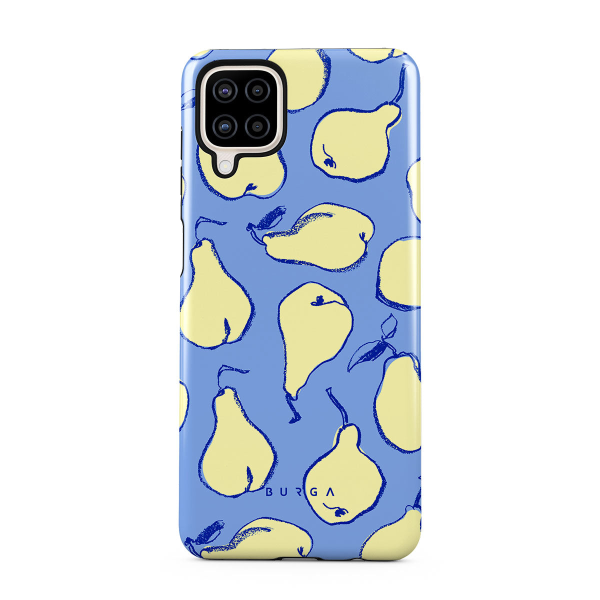 Step into a playful paradise with Pear Crush. Each pear is outlined with a lively, hand-drawn charm. This design brings a playful vibe to your Samsung Galaxy A12 4G phone case, perfect for those who love to embrace the lighter, more joyful side of life.