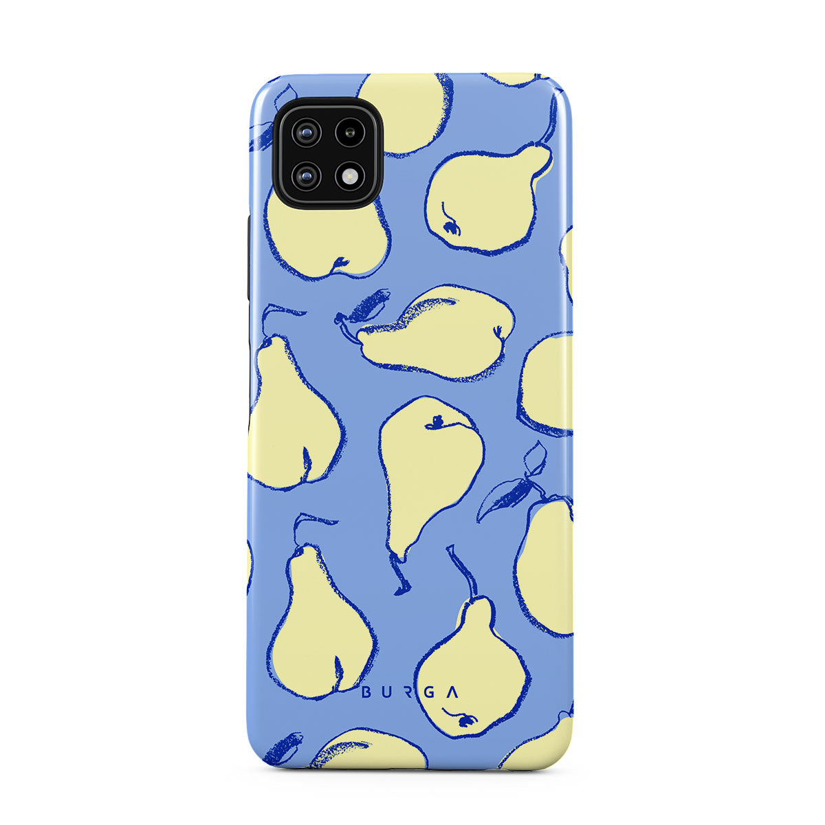 Step into a playful paradise with Pear Crush. Each pear is outlined with a lively, hand-drawn charm. This design brings a playful vibe to your Samsung Galaxy A22 5G phone case, perfect for those who love to embrace the lighter, more joyful side of life.
