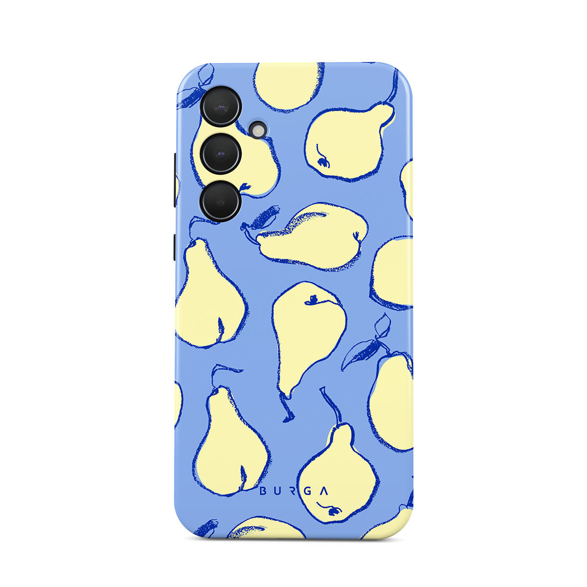 Step into a playful paradise with Pear Crush. Each pear is outlined with a lively, hand-drawn charm. This design brings a playful vibe to your Samsung Galaxy A35 phone case, perfect for those who love to embrace the lighter, more joyful side of life.