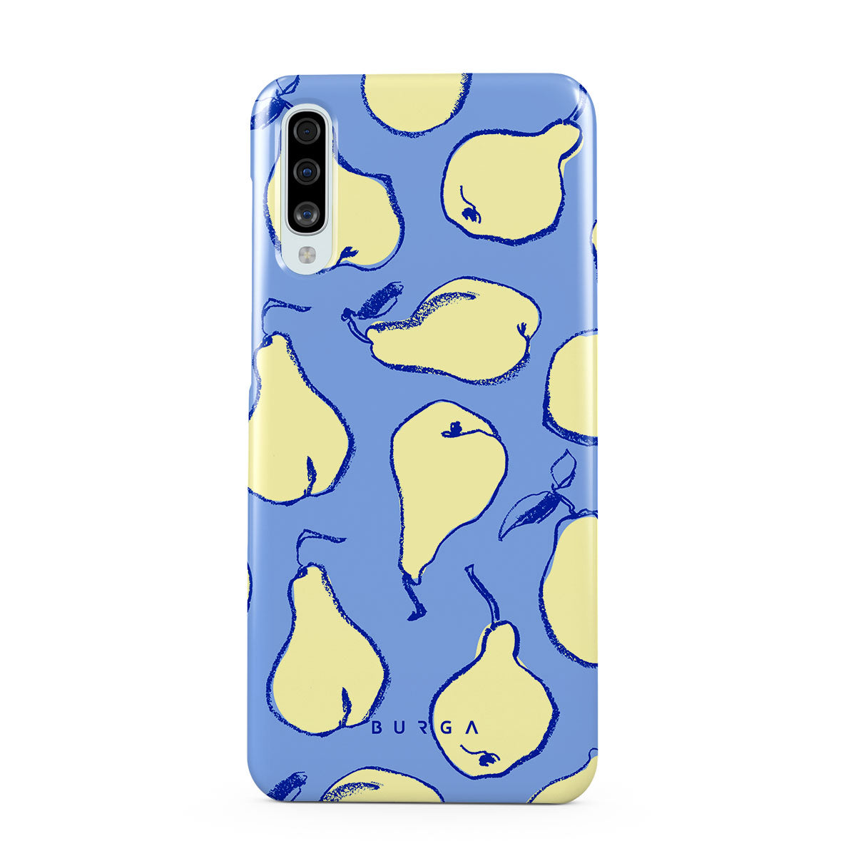 Step into a playful paradise with Pear Crush. Each pear is outlined with a lively, hand-drawn charm. This design brings a playful vibe to your Samsung Galaxy A50 phone case, perfect for those who love to embrace the lighter, more joyful side of life.