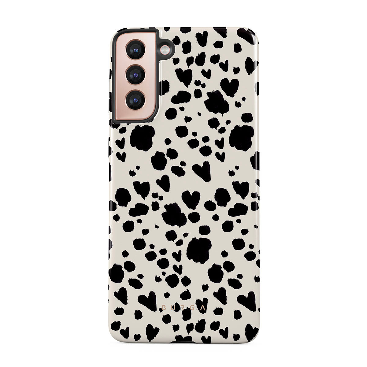 This Samsung Galaxy S21 Plus phone case design is covered in Dalmatians and daddy issues. Spotty, needy, and fully prepared to lovebomb you for attention.