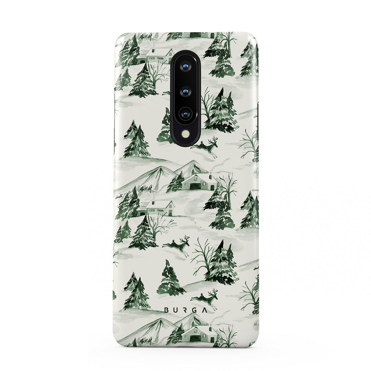 Winter forest OnePlus 8 phone case design that makes you want to cancel all plans and hibernate.