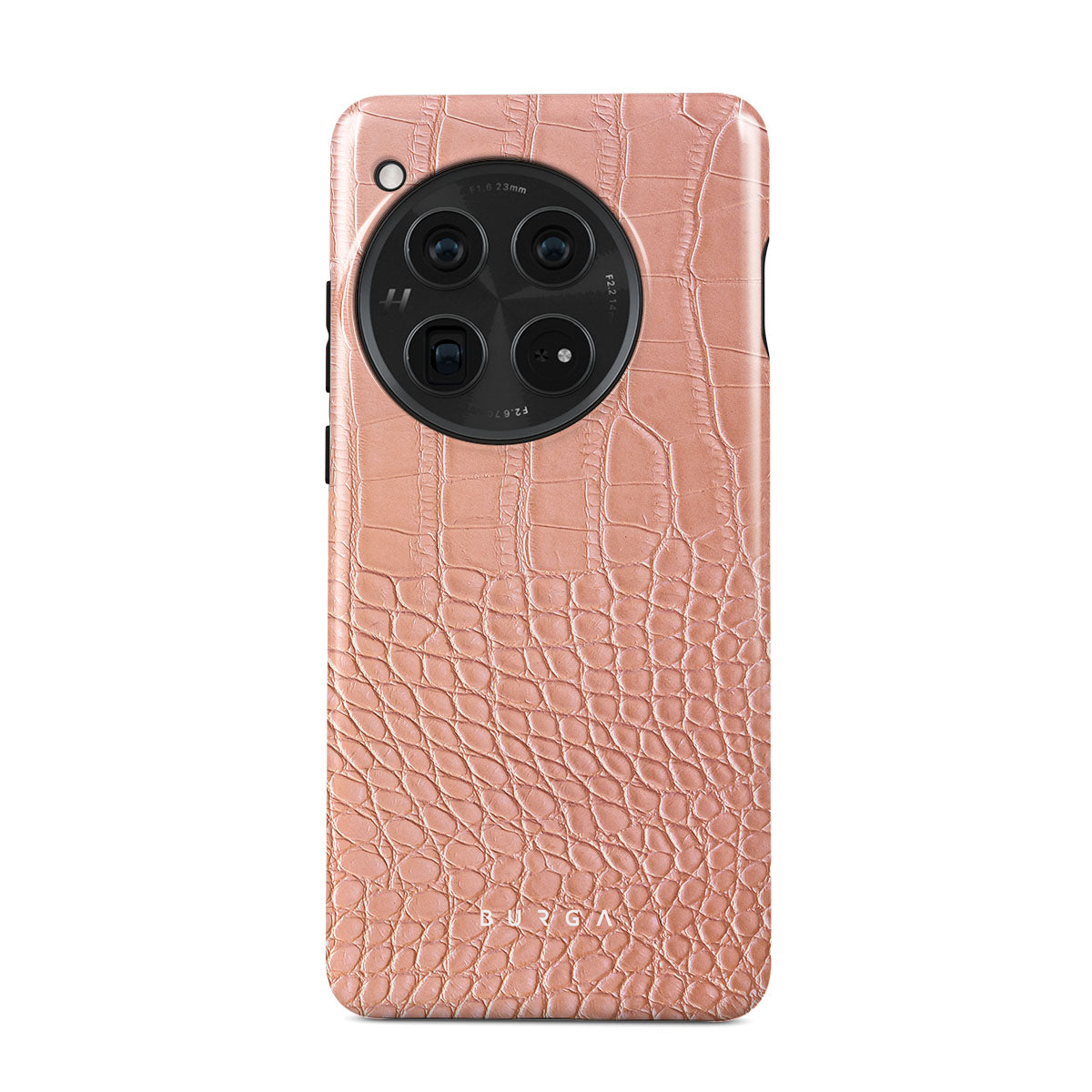 Our Pink Croco OnePlus 12 phone case features a classic crocodile design reimagined and showcased in a soft coral shade. The new take on the dangerous animal print will add a touch of softness to your style while simultaneously offering heavy-duty protection to your device.