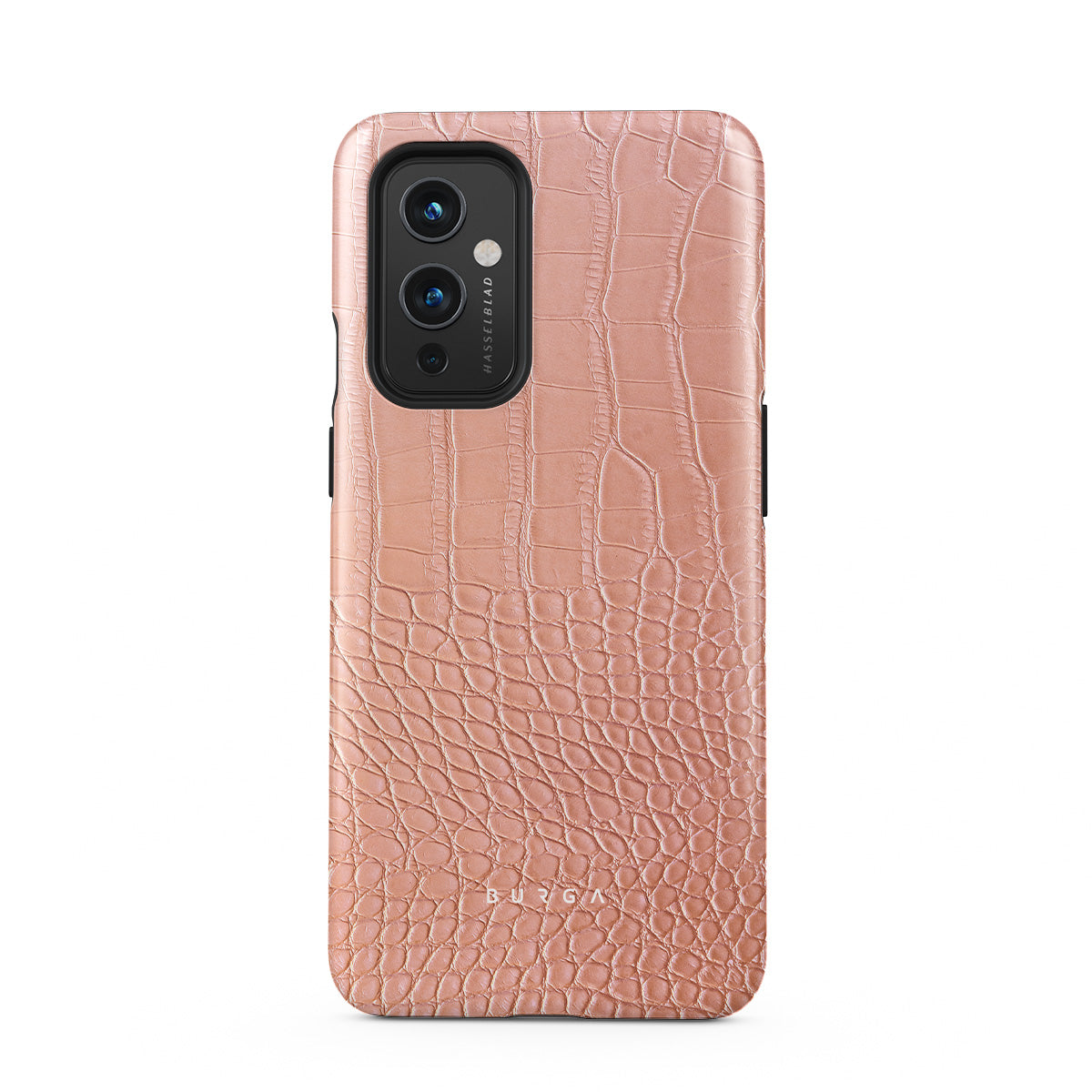 Our Pink Croco OnePlus 9 phone case features a classic crocodile design reimagined and showcased in a soft coral shade. The new take on the dangerous animal print will add a touch of softness to your style while simultaneously offering heavy-duty protection to your device.
