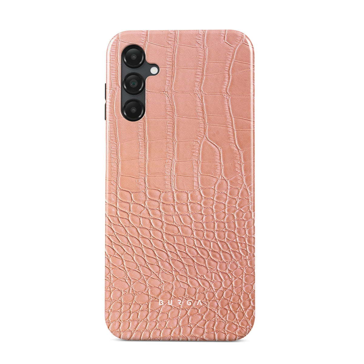 Our Pink Croco Samsung Galaxy A25 phone case features a classic crocodile design reimagined and showcased in a soft coral shade. The new take on the dangerous animal print will add a touch of softness to your style while simultaneously offering heavy-duty protection to your device.