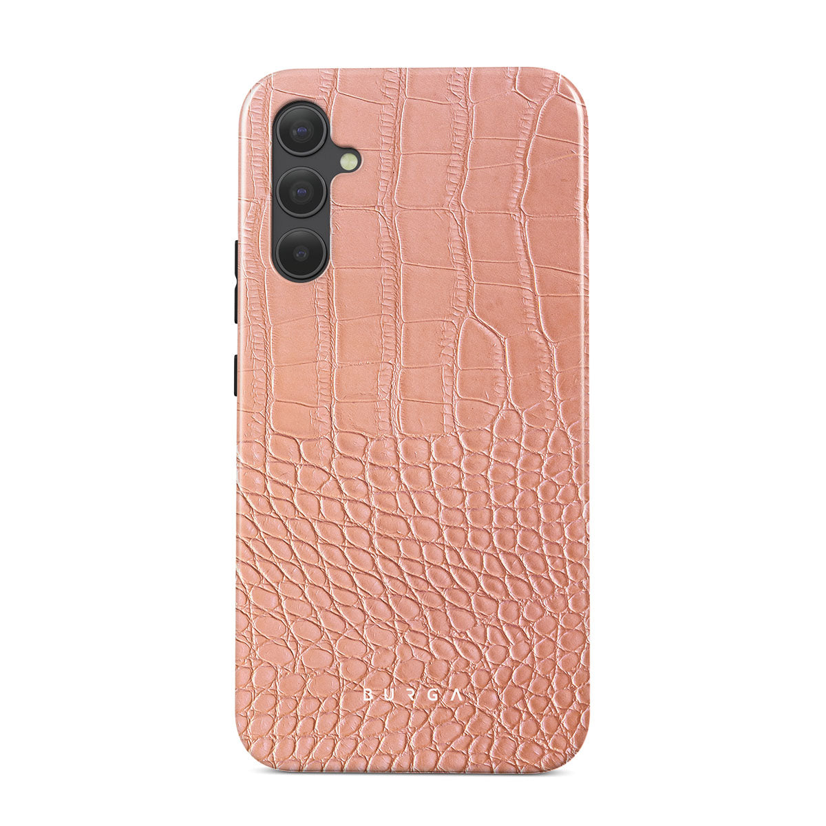 Our Pink Croco Samsung Galaxy A34 phone case features a classic crocodile design reimagined and showcased in a soft coral shade. The new take on the dangerous animal print will add a touch of softness to your style while simultaneously offering heavy-duty protection to your device.