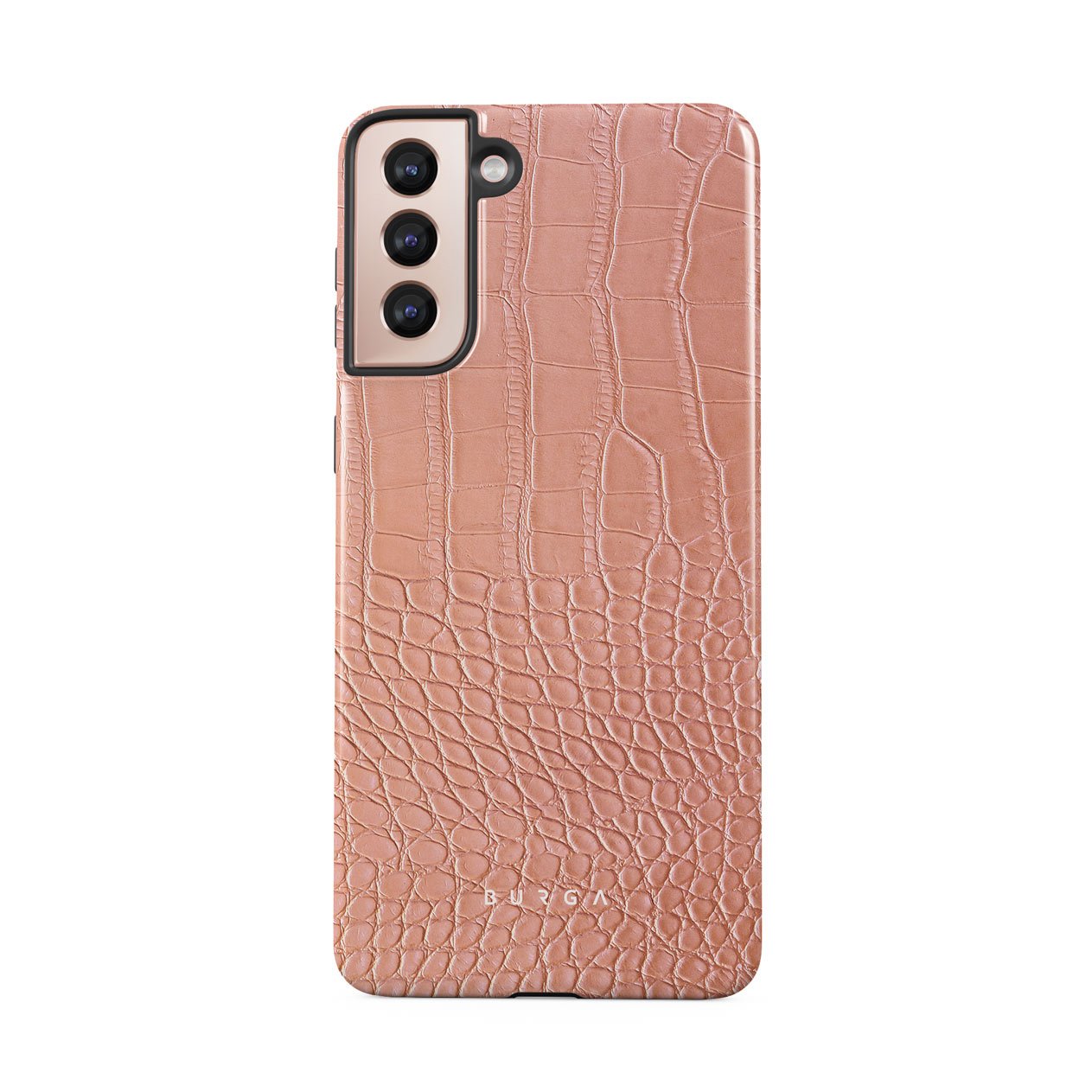 Our Pink Croco Samsung Galaxy S21 Plus phone case features a classic crocodile design reimagined and showcased in a soft coral shade. The new take on the dangerous animal print will add a touch of softness to your style while simultaneously offering heavy-duty protection to your device.