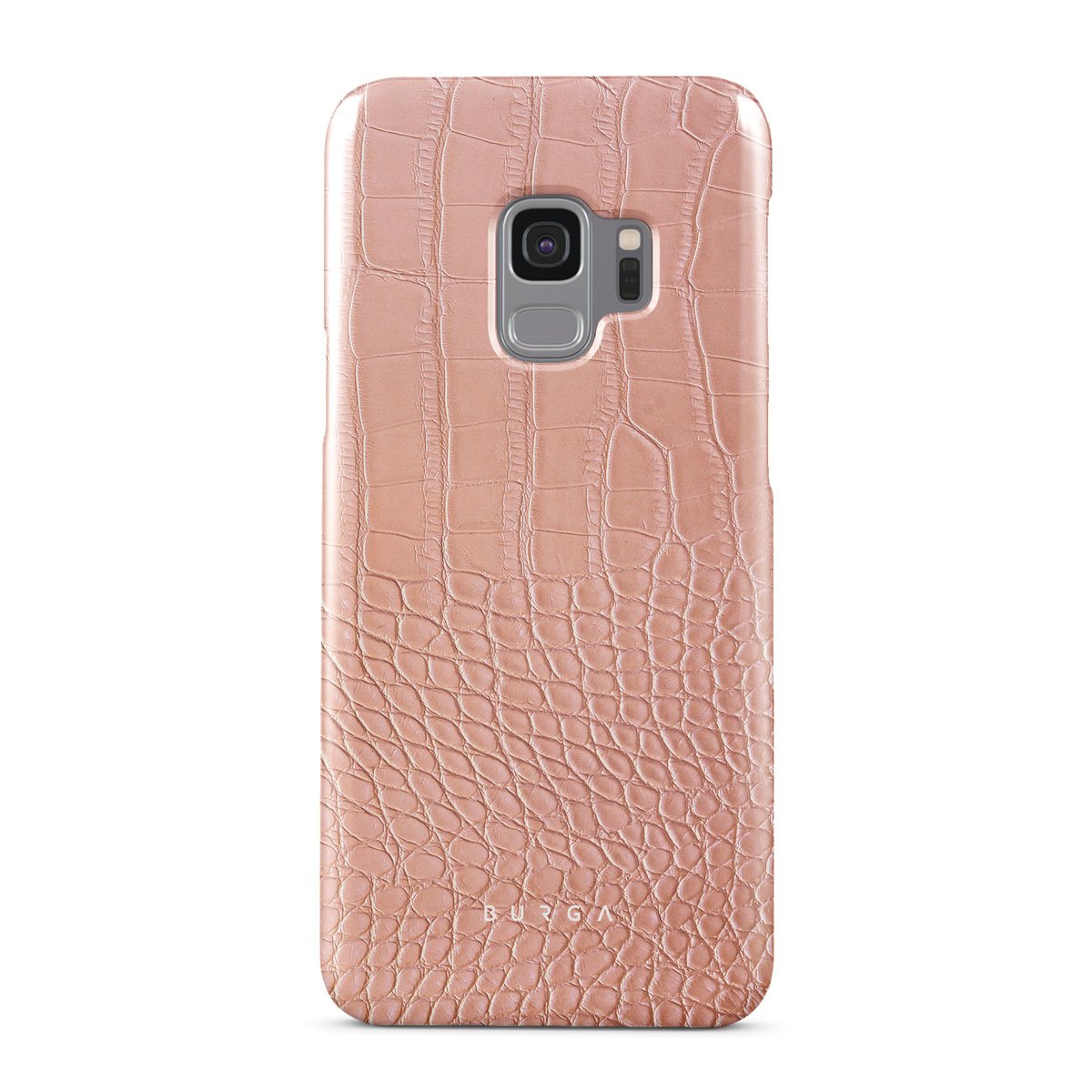 Our Pink Croco Samsung Galaxy S9 phone case features a classic crocodile design reimagined and showcased in a soft coral shade. The new take on the dangerous animal print will add a touch of softness to your style while simultaneously offering heavy-duty protection to your device.