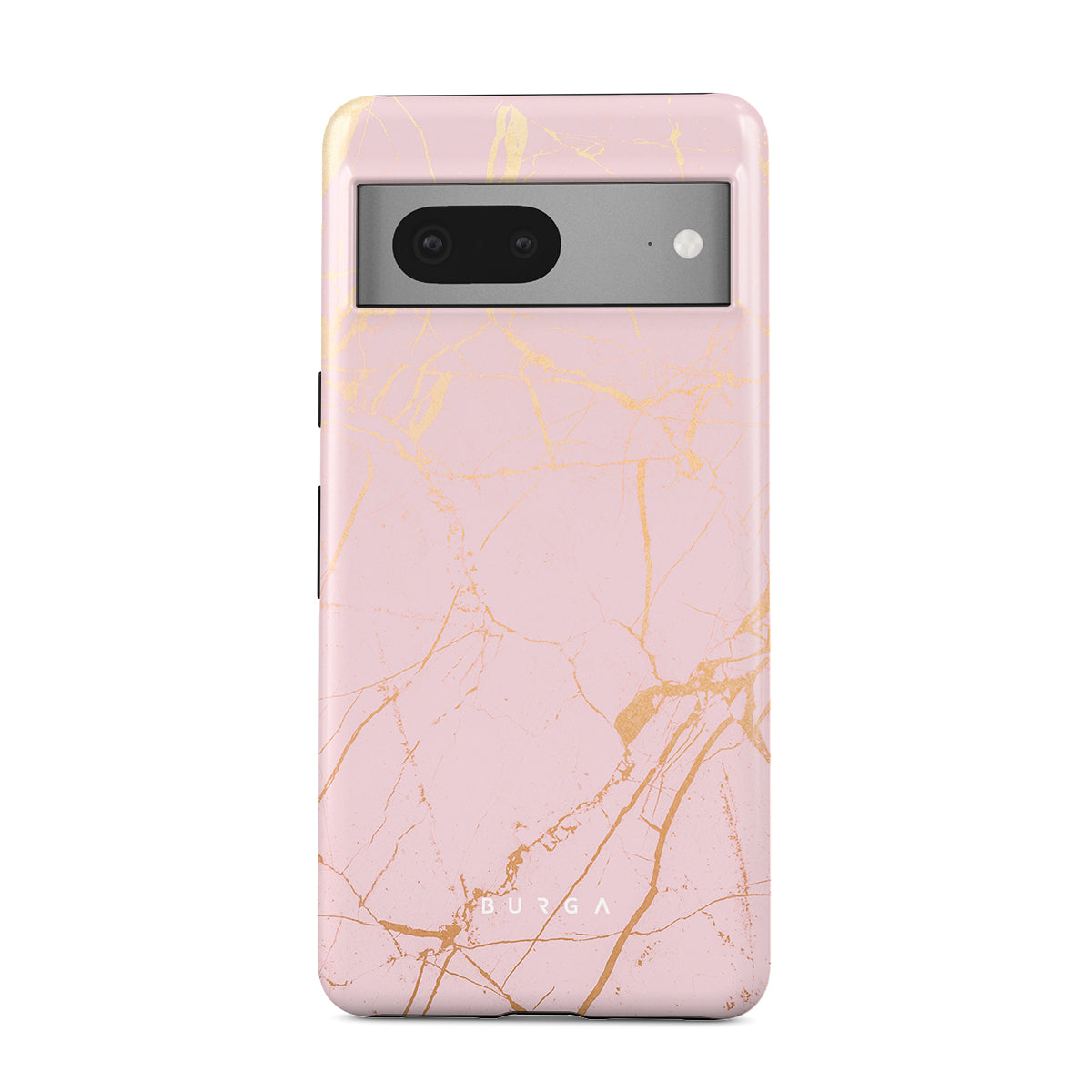 Growing under the beautiful sky and warmed by the rays of the sunshine, when ripped, peach offers you sweetness and softness. This is why our Peachy Gold Google Pixel 7 phone case design adds a bit of golden color to the pink marble dream making a protective phone case both pretty and durable.