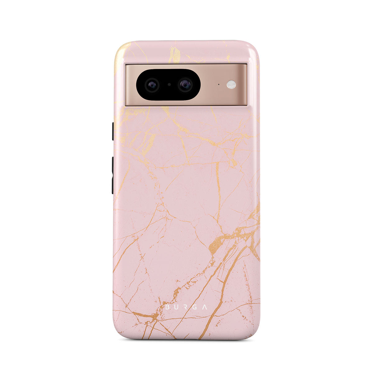 Growing under the beautiful sky and warmed by the rays of the sunshine, when ripped, peach offers you sweetness and softness. This is why our Peachy Gold Google Pixel 8 phone case design adds a bit of golden color to the pink marble dream making a protective phone case both pretty and durable.