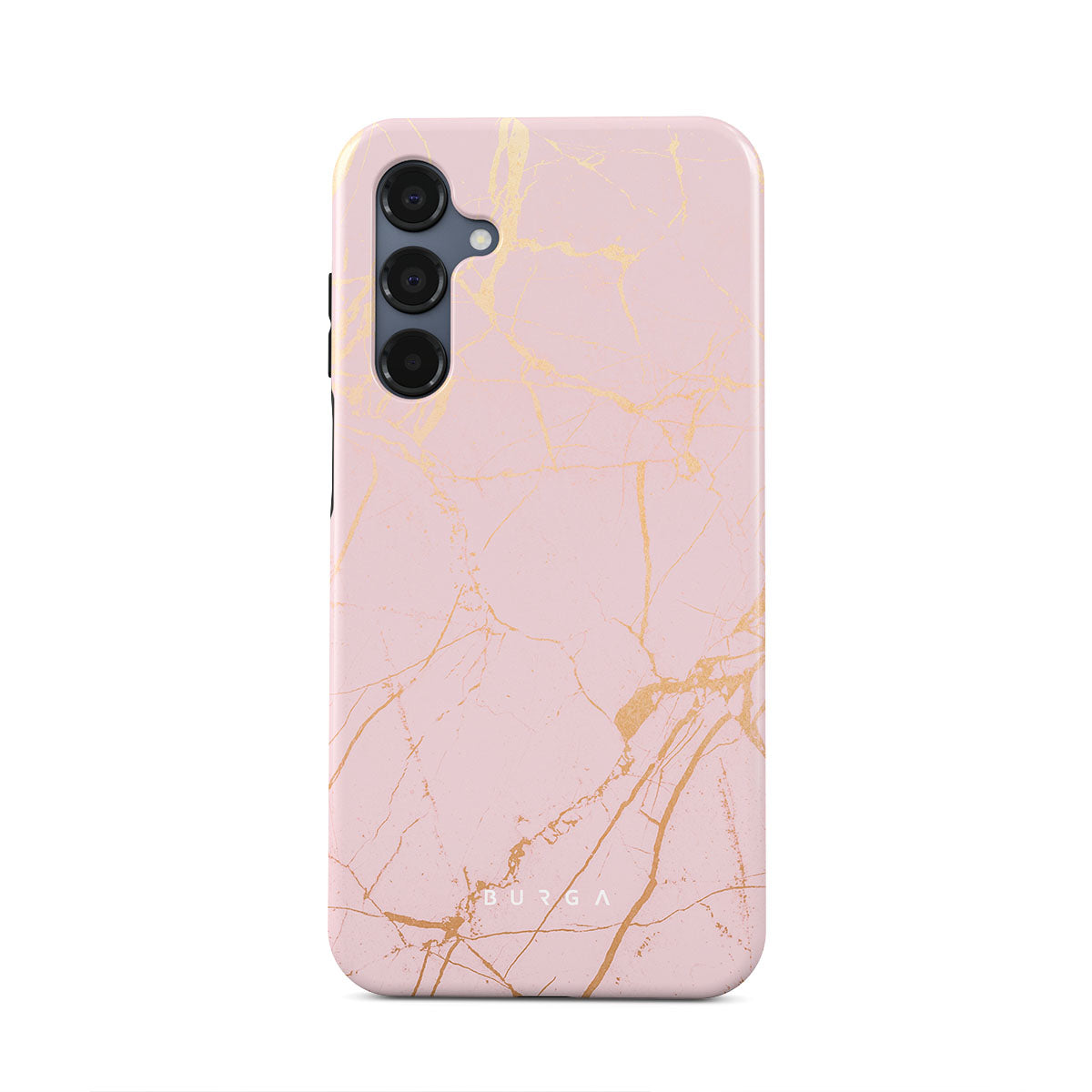 Growing under the beautiful sky and warmed by the rays of the sunshine, when ripped, peach offers you sweetness and softness. This is why our Peachy Gold Samsung Galaxy A16 phone case design adds a bit of golden color to the pink marble dream making a protective phone case both pretty and durable.