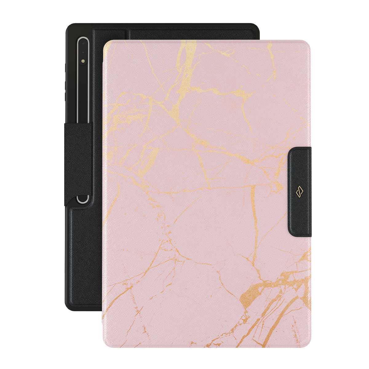 Growing under the beautiful sky and warmed by the rays of the sunshine, when ripped, peach offers you sweetness and softness. This is why our Peachy Gold Samsung Galaxy Tab S8 Ultra folio case design adds a bit of golden color to the pink marble dream making a protective Galaxy Tab case cover both pretty and durable.