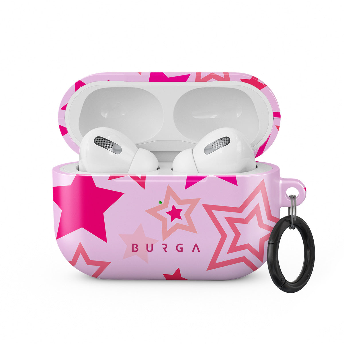 Buckle up for a starry ride, and let's twirl under the Plastic Sky. Neon stars shimmering across a cheeky rose-tinted galaxy create a playful space-disco atmosphere. Be the center of the universe with our Plastic Sky Apple Airpods Pro case cover!