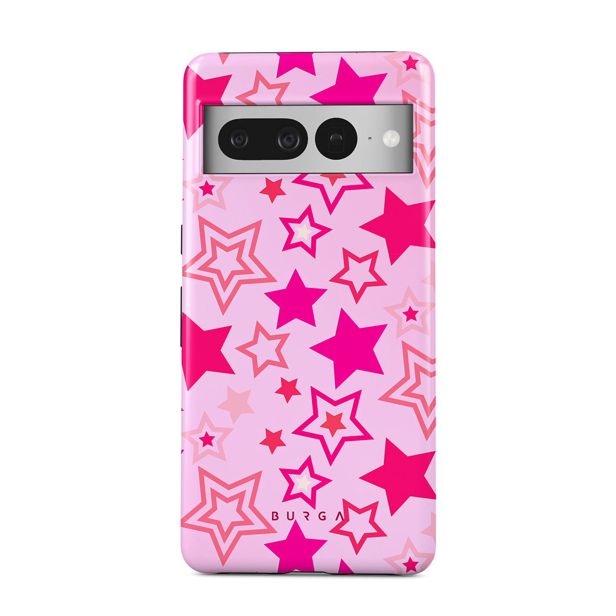 Buckle up for a starry ride, and let's twirl under the Plastic Sky. Neon stars shimmering across a cheeky rose-tinted galaxy create a playful space-disco atmosphere. Be the center of the universe with our Plastic Sky Google Pixel 7 Pro phone case!
