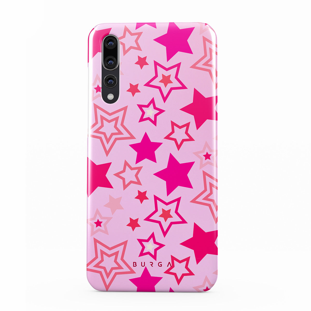 Buckle up for a starry ride, and let's twirl under the Plastic Sky. Neon stars shimmering across a cheeky rose-tinted galaxy create a playful space-disco atmosphere. Be the center of the universe with our Plastic Sky Huawei P20 phone case!