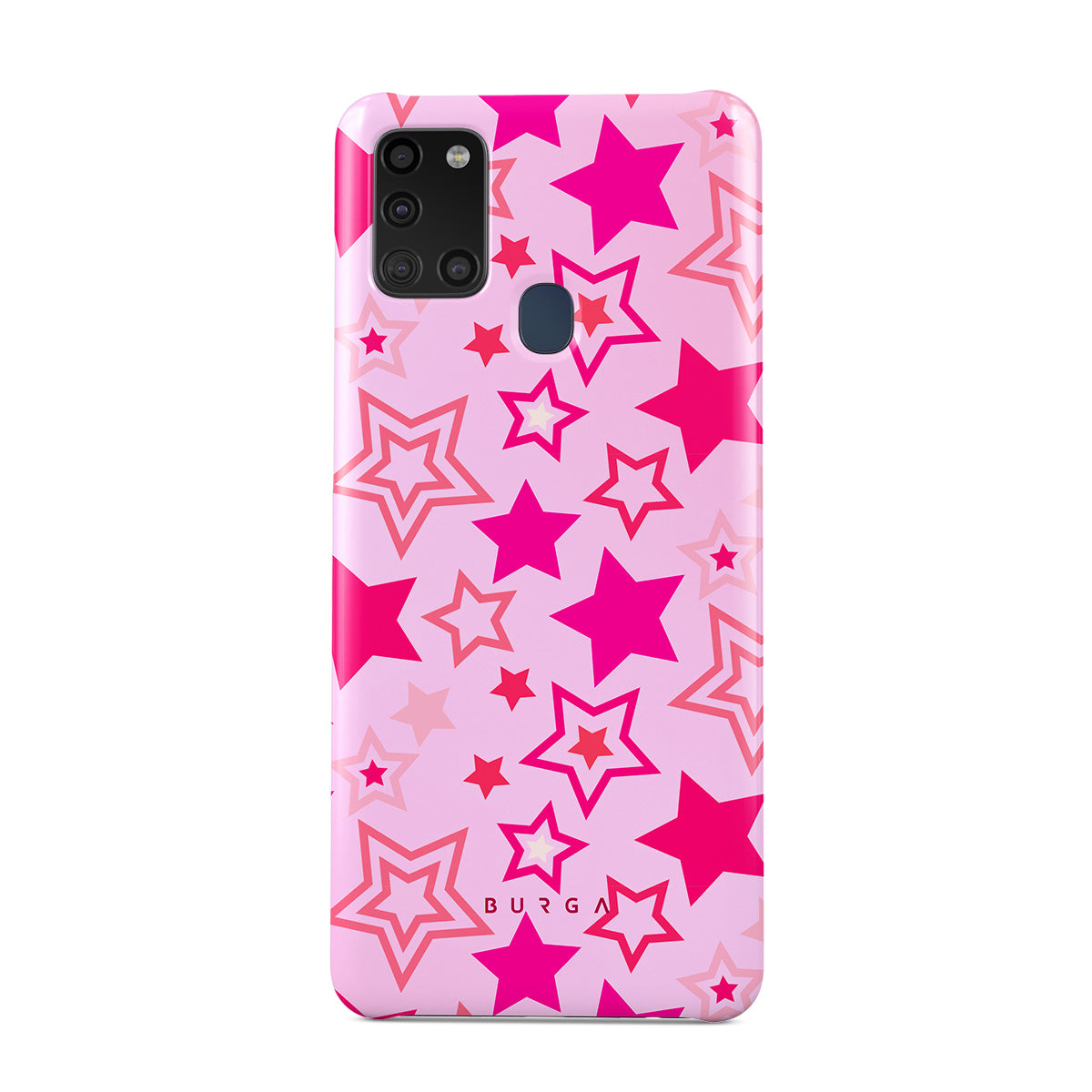 Buckle up for a starry ride, and let's twirl under the Plastic Sky. Neon stars shimmering across a cheeky rose-tinted galaxy create a playful space-disco atmosphere. Be the center of the universe with our Plastic Sky Samsung Galaxy A21s 4G phone case!