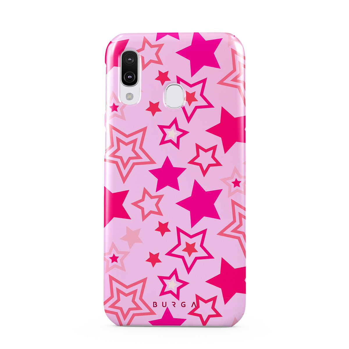 Buckle up for a starry ride, and let's twirl under the Plastic Sky. Neon stars shimmering across a cheeky rose-tinted galaxy create a playful space-disco atmosphere. Be the center of the universe with our Plastic Sky Samsung Galaxy A40 phone case!
