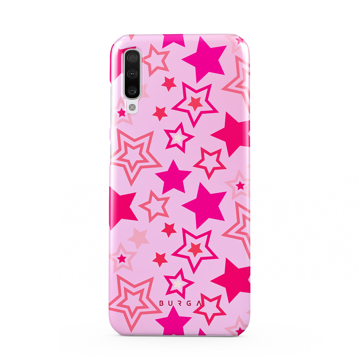 Buckle up for a starry ride, and let's twirl under the Plastic Sky. Neon stars shimmering across a cheeky rose-tinted galaxy create a playful space-disco atmosphere. Be the center of the universe with our Plastic Sky Samsung Galaxy A70 phone case!