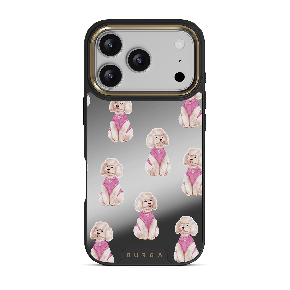 This design features: poodles, dogs, pets, pink details, mirror