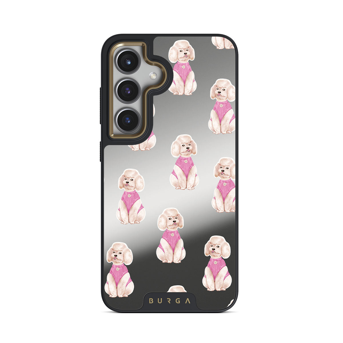 This design features: poodles, dogs, pets, pink details, mirror