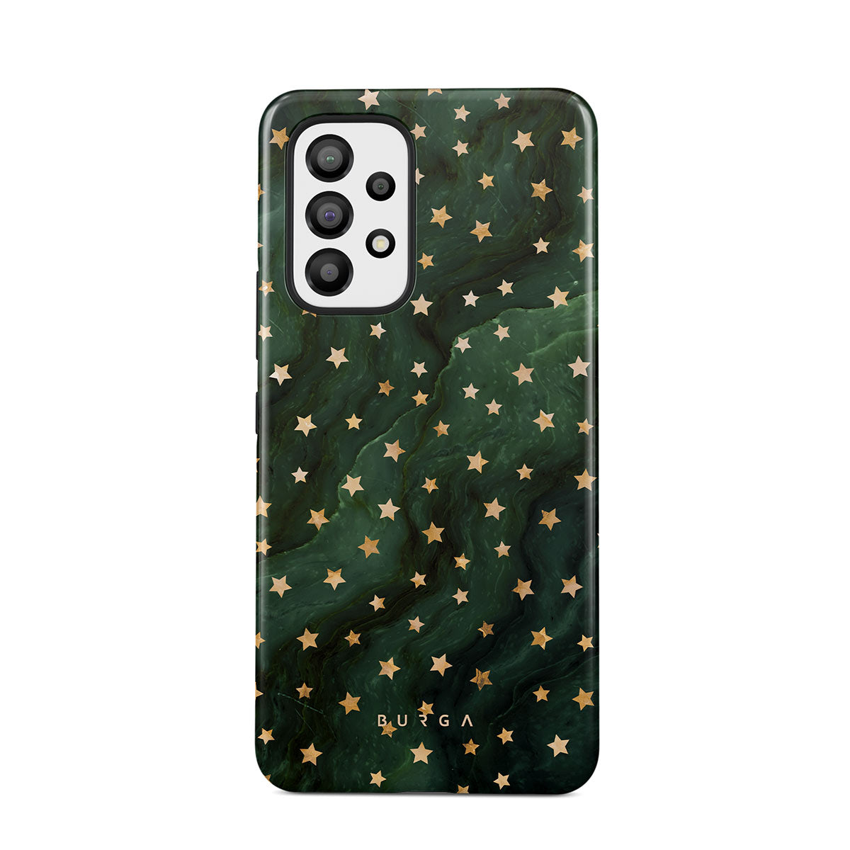 Our Prince Charming Samsung Galaxy A33 phone case is the only prince your device will ever need. Deep green marble with some magical stars will indeed look extraordinary in your accessories collection. We can also promise that this prince, although green, will not turn into a frog, and he will always be there for your phone!