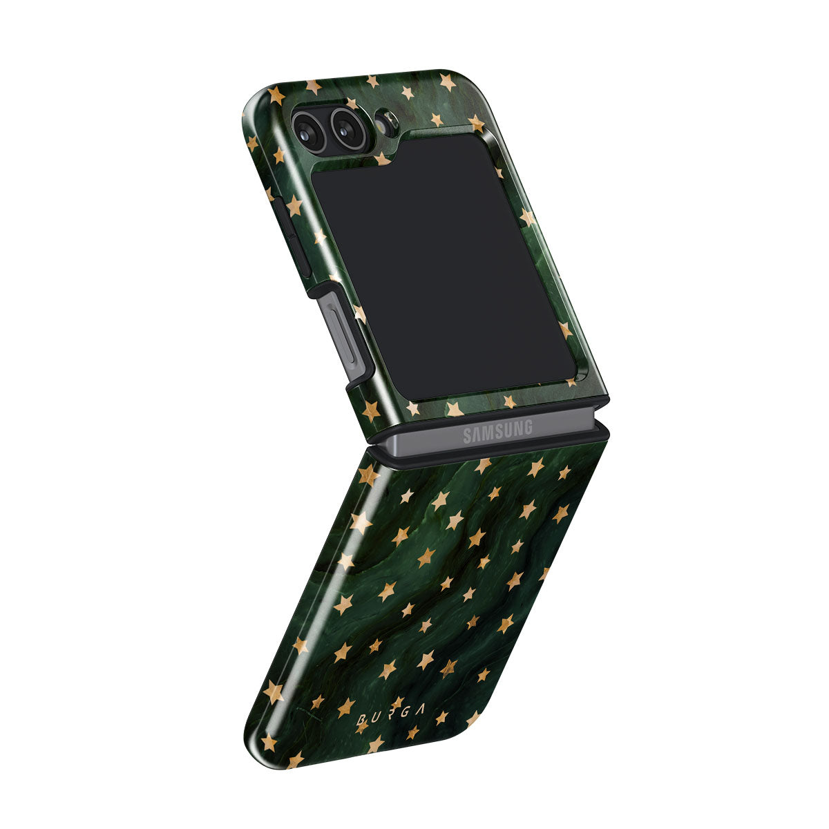Our Prince Charming Samsung Galaxy Z Flip 5 phone case is the only prince your device will ever need. Deep green marble with some magical stars will indeed look extraordinary in your accessories collection. We can also promise that this prince, although green, will not turn into a frog, and he will always be there for your phone!