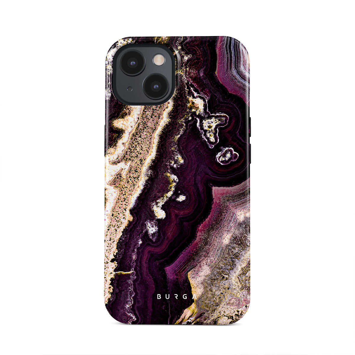 Marble meets geode look in our durable Purple Skies iPhone 15 Plus phone case. You can rest sure that our hard-shell purple marble phone case will protect your device from any unexpected falls while adding elegance and luxury to your style.