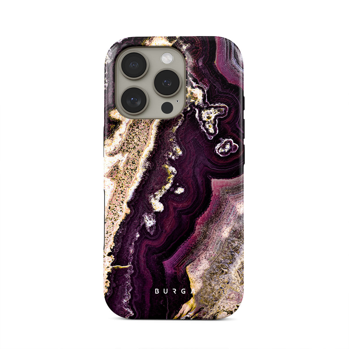 Marble meets geode look in our durable Purple Skies iPhone 16 Pro phone case. You can rest sure that our hard-shell purple marble phone case will protect your device from any unexpected falls while adding elegance and luxury to your style.