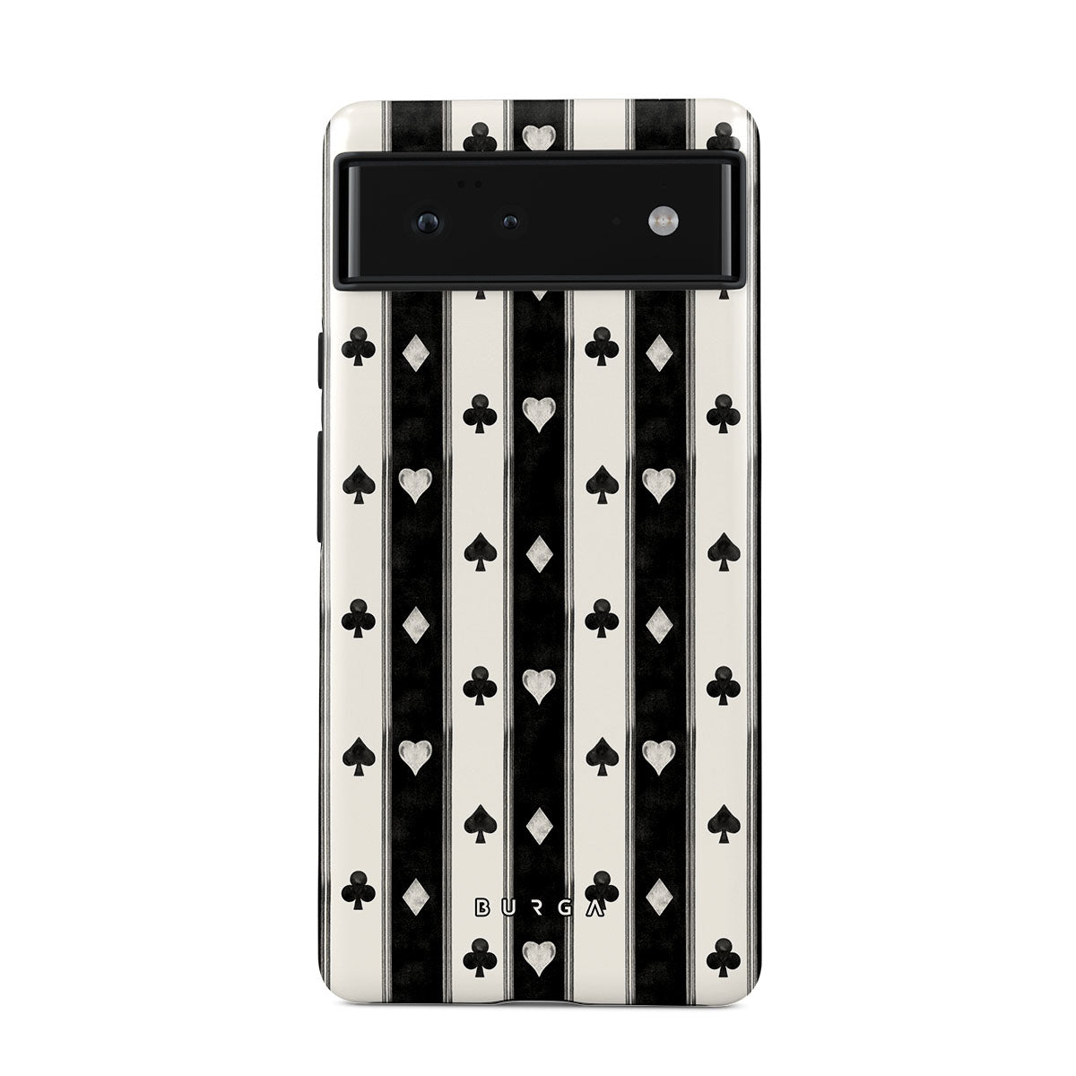 Black and white, power and play. The Queen’s Court Google Pixel 6a phone case design doesn’t ask for permission—it takes what it wants. If you’re not moving pieces, you’re one of them.