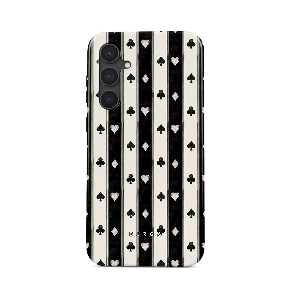 Black and white, power and play. The Queen’s Court Samsung Galaxy S23 FE phone case design doesn’t ask for permission—it takes what it wants. If you’re not moving pieces, you’re one of them.