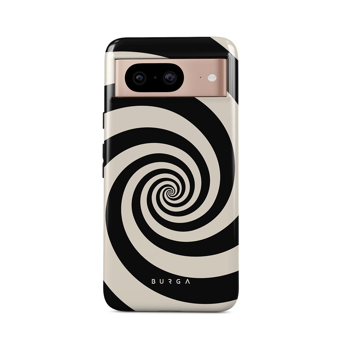 A visual vortex that pulls you in—where you end up is anyone’s guess. Reality? Fantasy? The lines blur in this hypnotic Google Pixel 8 phone case design. One wrong turn, or the right one? You decide.