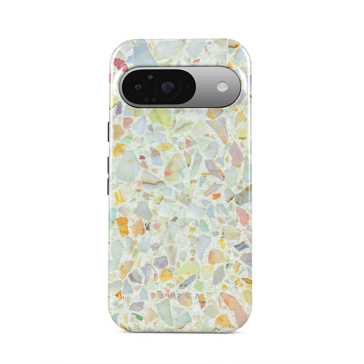 Sun is shining bright, creating rainbows on the path as the light and warm rain just washed the tiles. Walk around barefoot and feel the magic in your steps. Take this summery feeling encased in a cute Google Pixel 9 phone case that is as protective as mesmerizing the rainbow can be.