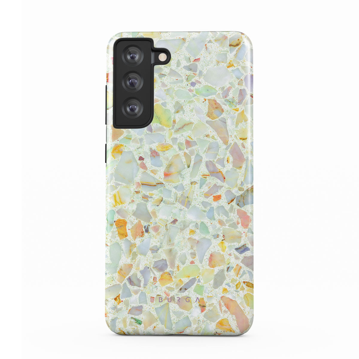 Sun is shining bright, creating rainbows on the path as the light and warm rain just washed the tiles. Walk around barefoot and feel the magic in your steps. Take this summery feeling encased in a cute Samsung Galaxy S21 FE phone case that is as protective as mesmerizing the rainbow can be.