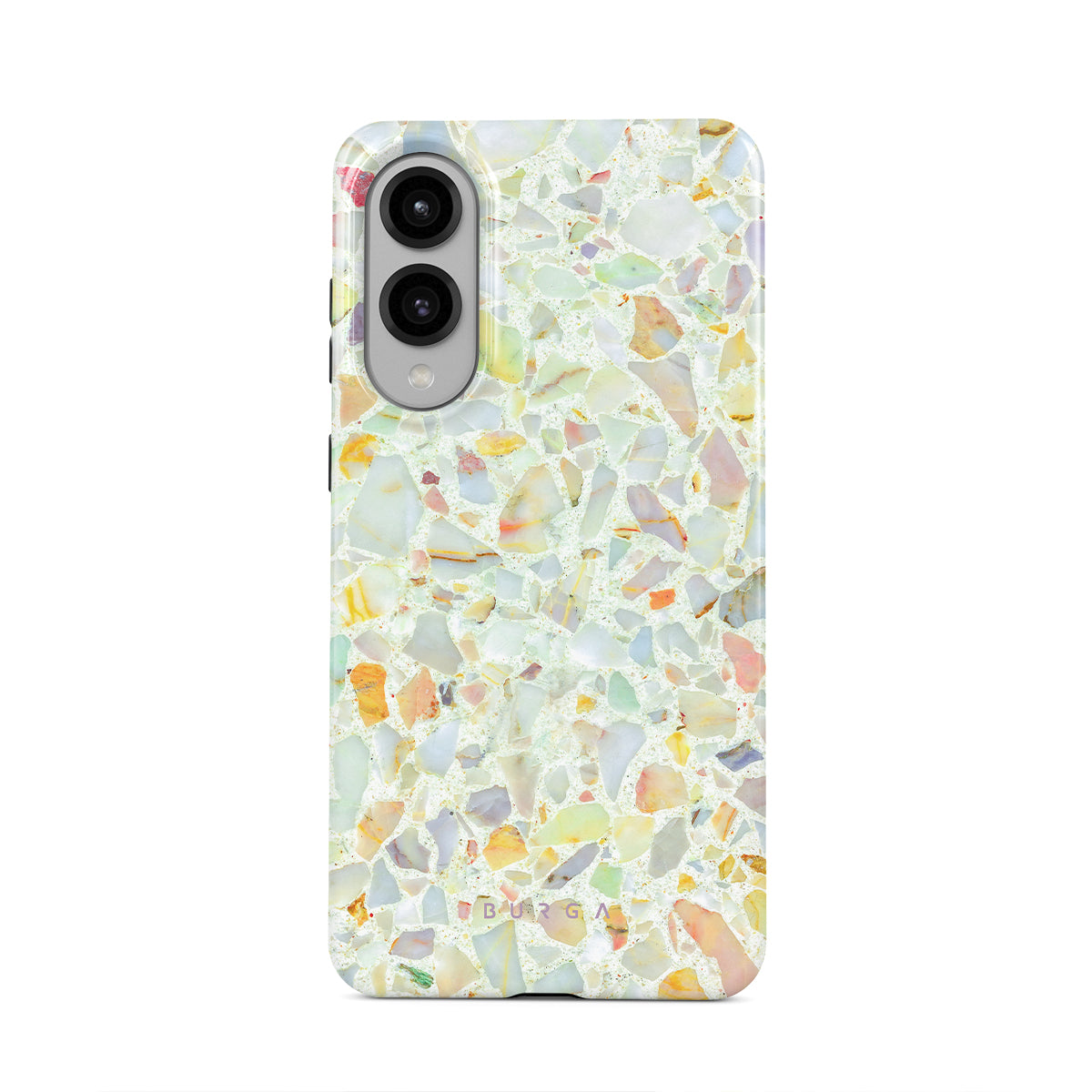 Sun is shining bright, creating rainbows on the path as the light and warm rain just washed the tiles. Walk around barefoot and feel the magic in your steps. Take this summery feeling encased in a cute Samsung Galaxy S25 Edge phone case that is as protective as mesmerizing the rainbow can be.