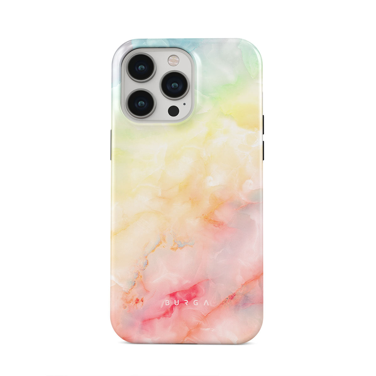 Color your world with our New Flame iPhone 13 Pro phone case. Inspired by the rainbow, this case is guaranteed to brighten your style. The dreamy pastel rainbow and the shockproof design of our case will keep your phone safe and sound while looking better than ever.